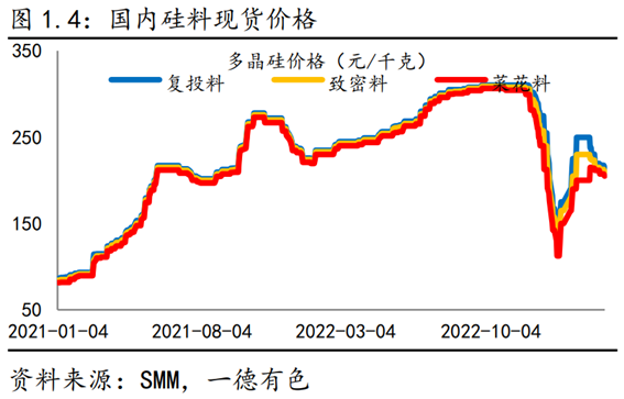 据统计2023年一季度新增产能10-15万吨,二季度新增产能30万吨,三季度新增产能50万吨,四季度新增产能10万吨,由于投产后需要2-3个月出产品,产品爬坡期为3-6个月,因此下半年多晶硅产量贡献较多。
