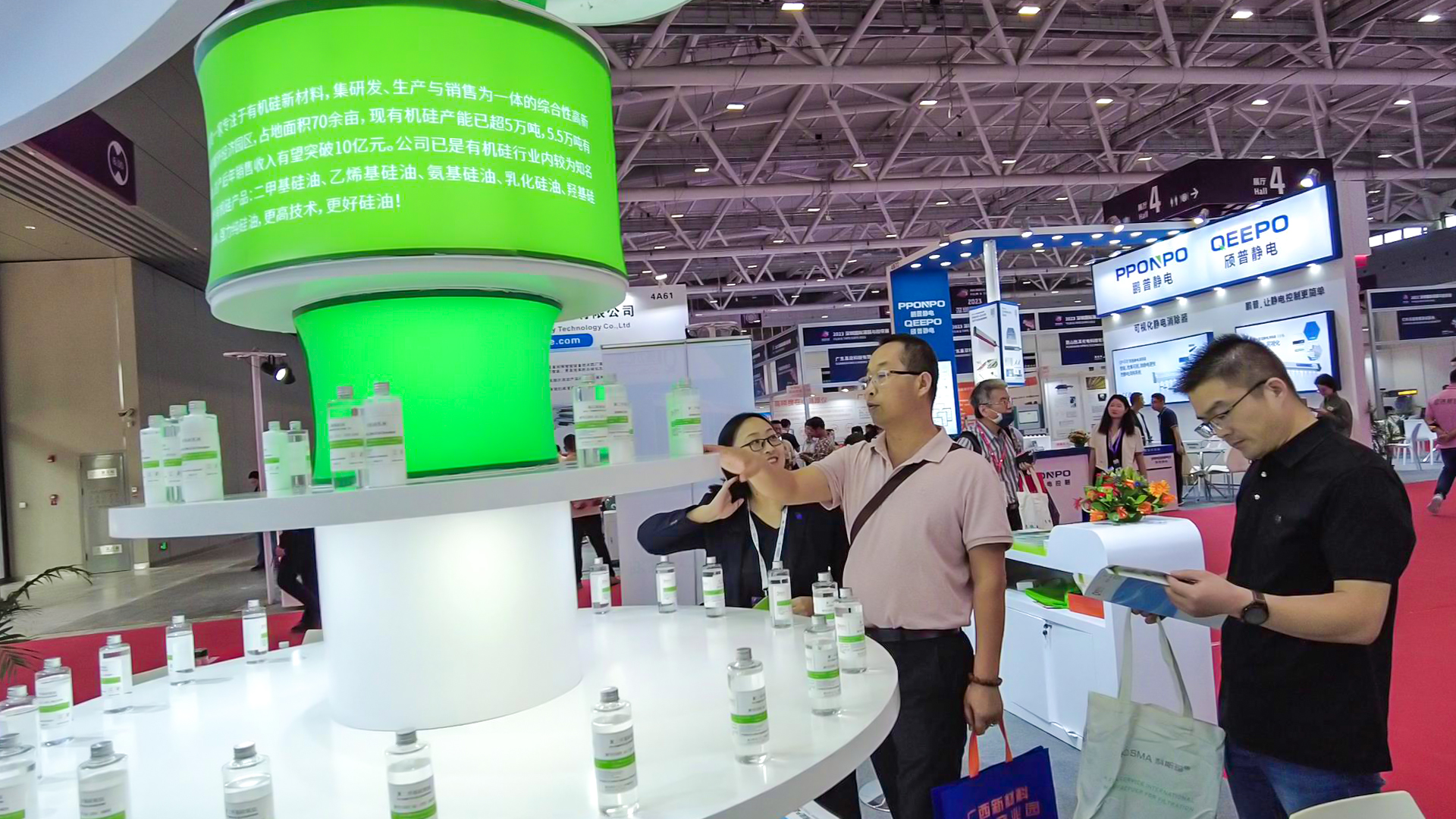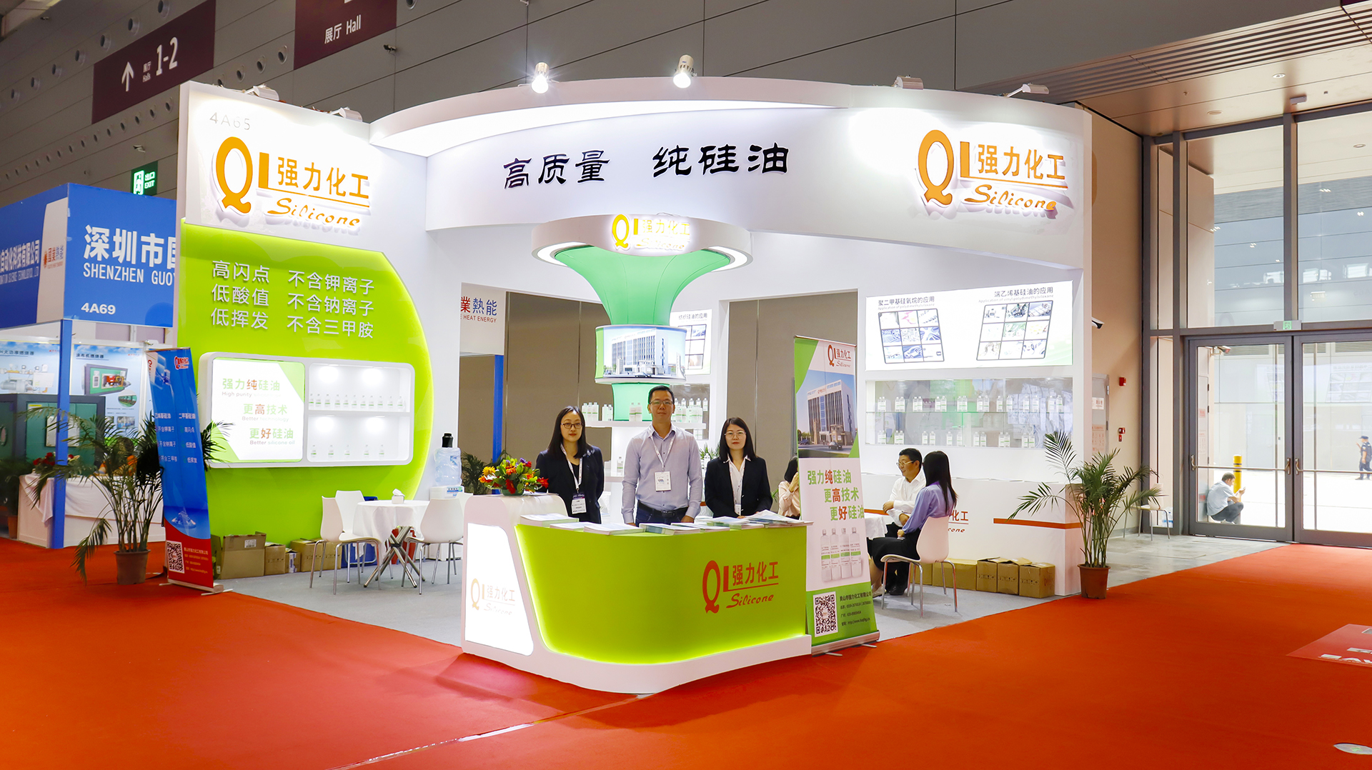 此次展会,在叶光华董事长带领下,派出黄山总部与广州分部的销售精英们隆重参展。展会现场交流气氛热烈,小伙伴们热情招待客户,耐心解答客户问题,与客户进行深切的交流和沟通。同时我司带来了主打产品:聚二甲基硅氧烷5到12500粘度,乙烯基硅油100到20000粘度,氨基硅油2211到2253等不同粘度含氮量共11个牌号的新品以及多个牌号的有机硅乳液参展,高品质高质量的产品也得到了来访客户的一直好评与认可。问鼎在线(中国)唯一官方网站的硅油具有高闪点、低挥发、低酸值的特色,不含钾离子、钠离子、三甲胺等离子,问鼎在线(中国)唯一官方网站的产品特色是强力纯硅油、更高技术、更好硅油!