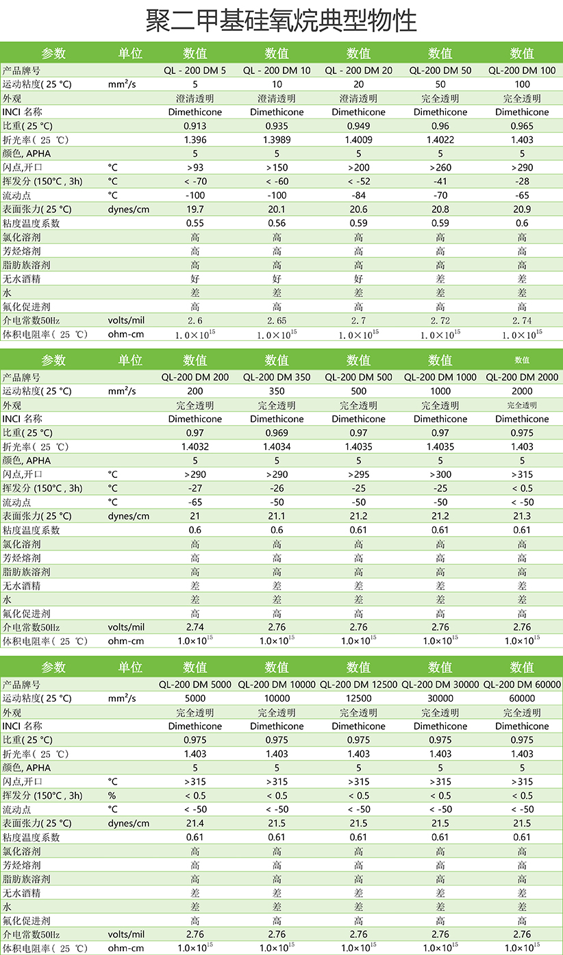 ■ 电气绝缘性好硅油具有良好的介电性能,随温度和周波数的变化,其电气特性变化很小。介电常数随温度升高而下降,但变化很少。硅油的功率因素低,随温度上升而增加,但随频率变化没有规则。体积电阻率随温度上升而下降。
