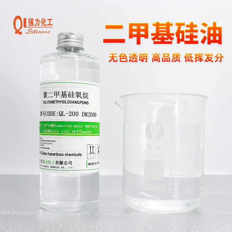 二甲基硅油无味无毒,具有生理惰性、良好的化学稳定性、电缘性和耐候性,粘度范围广,凝固点低,闪点高,疏水性能好,并具有很高的抗剪能力,可在50~180oC温度内长期使用,广泛用做绝缘、润滑、防震、防尘油、介电液和热载体,有及用作消泡、脱膜、油漆和日用化妆品的添加剂等。