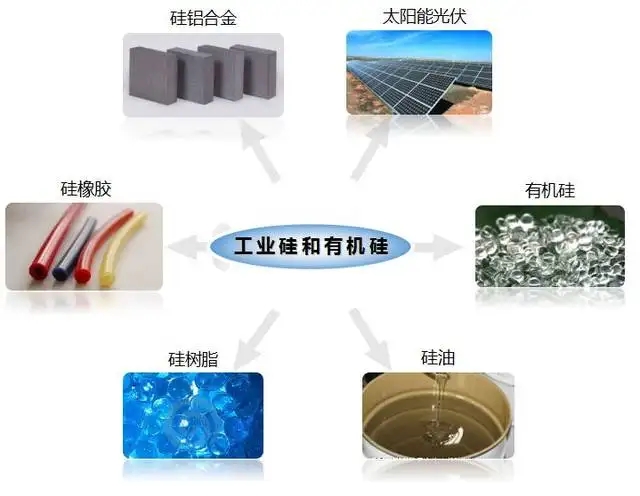 工业硅的下游主要应用于合金、有机硅和晶体硅的生产。
