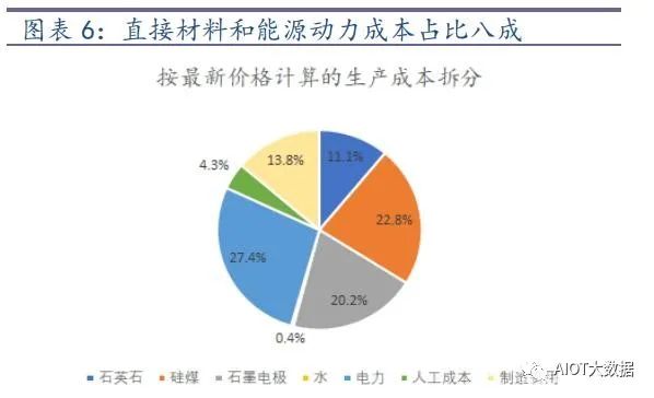 直接材料和能源动力是工业硅主要的成本构成,直接材料包括:硅矿石、石油焦、硅煤、石 墨电极等,能源动力包括:煤炭、电力。以合盛硅业 2021 年工业硅生产成本拆分看,直接材料 占比 46%、能源动力占比 32%。问鼎在线(中国)唯一官方网站按照最新的原材料价格测算新疆工业硅企业成本构成,石英 砂占比 11%、硅煤占比 23%、石墨电极 20%、电力占比 27%。