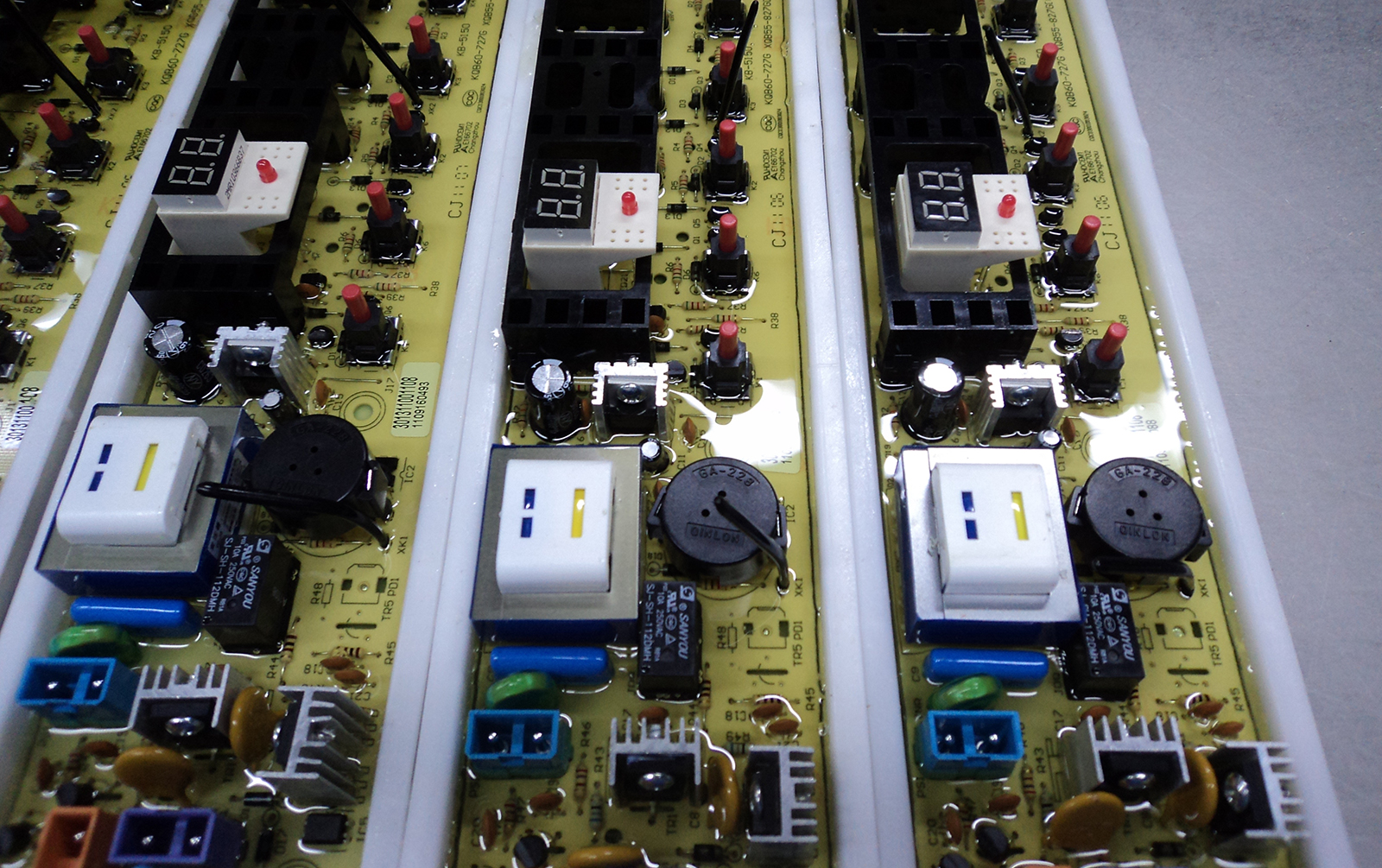 6、全自动洗衣机微电脑控制板在使用电子灌封胶后还能达到散热性,保护电器元器件在大功率工作下散发的热能能够传到出去,不会烧毁元器件。